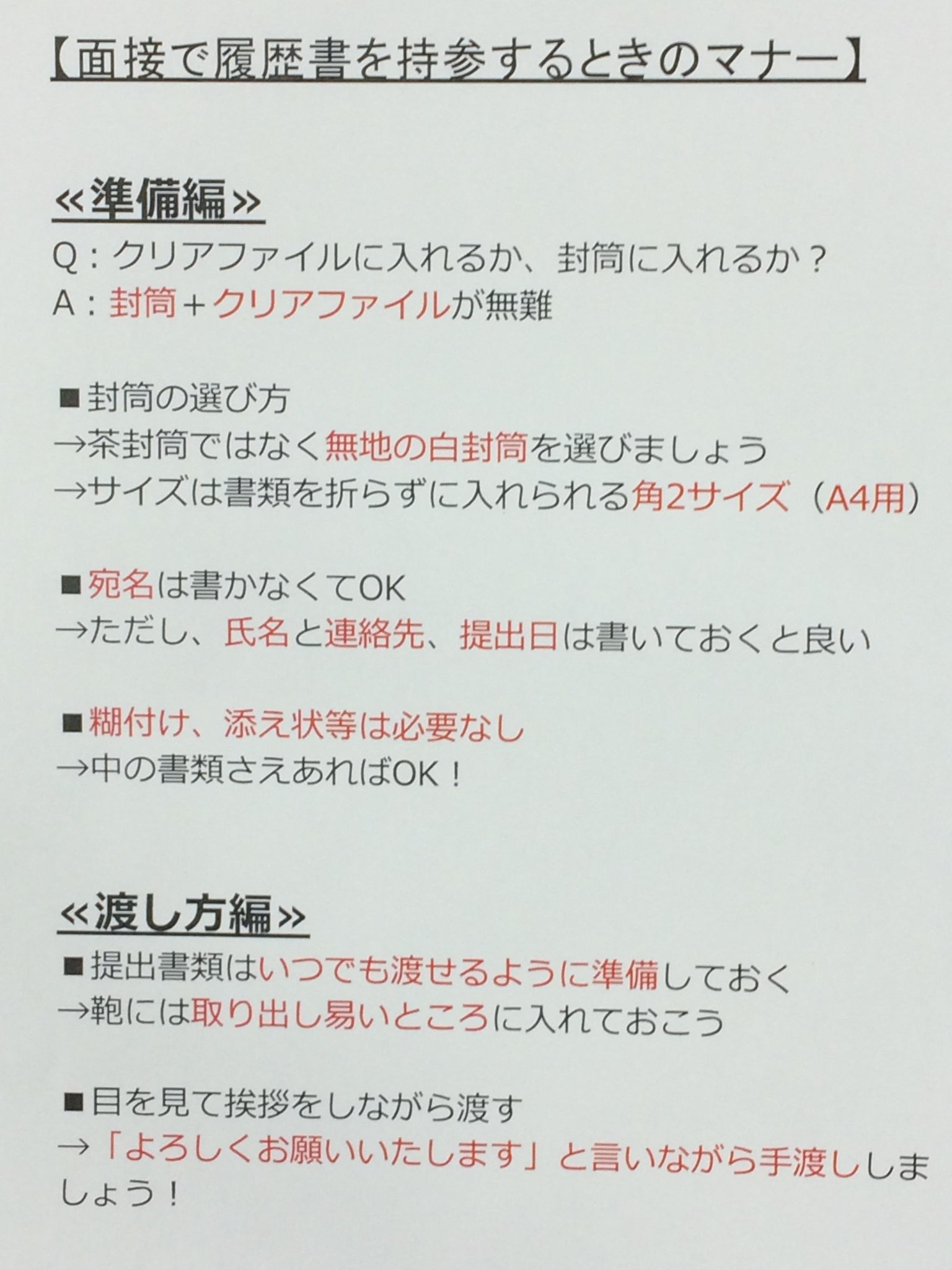 封筒やファイルは必要 履歴書を手渡しするときのマナーまとめ Jobshil